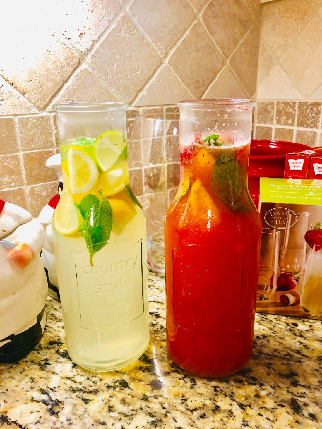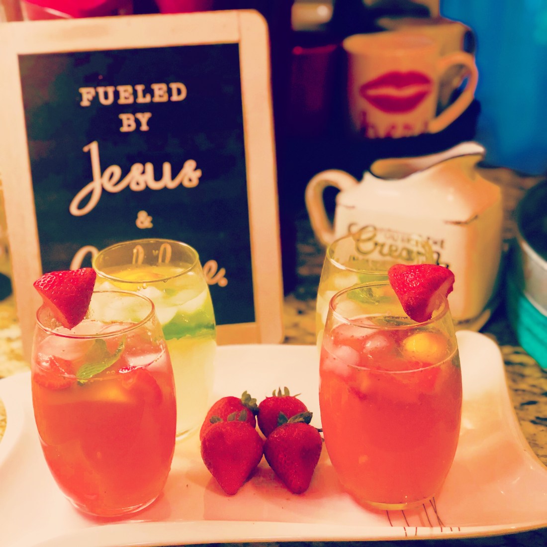 My favorite thing about summer is the delicious drinks! This weekend I decided to make strawberry lemonade and regular lemonade for my family’s taco night! The drinks were a hit! I love making my lemonade homemade because I love all the fresh ingredients!