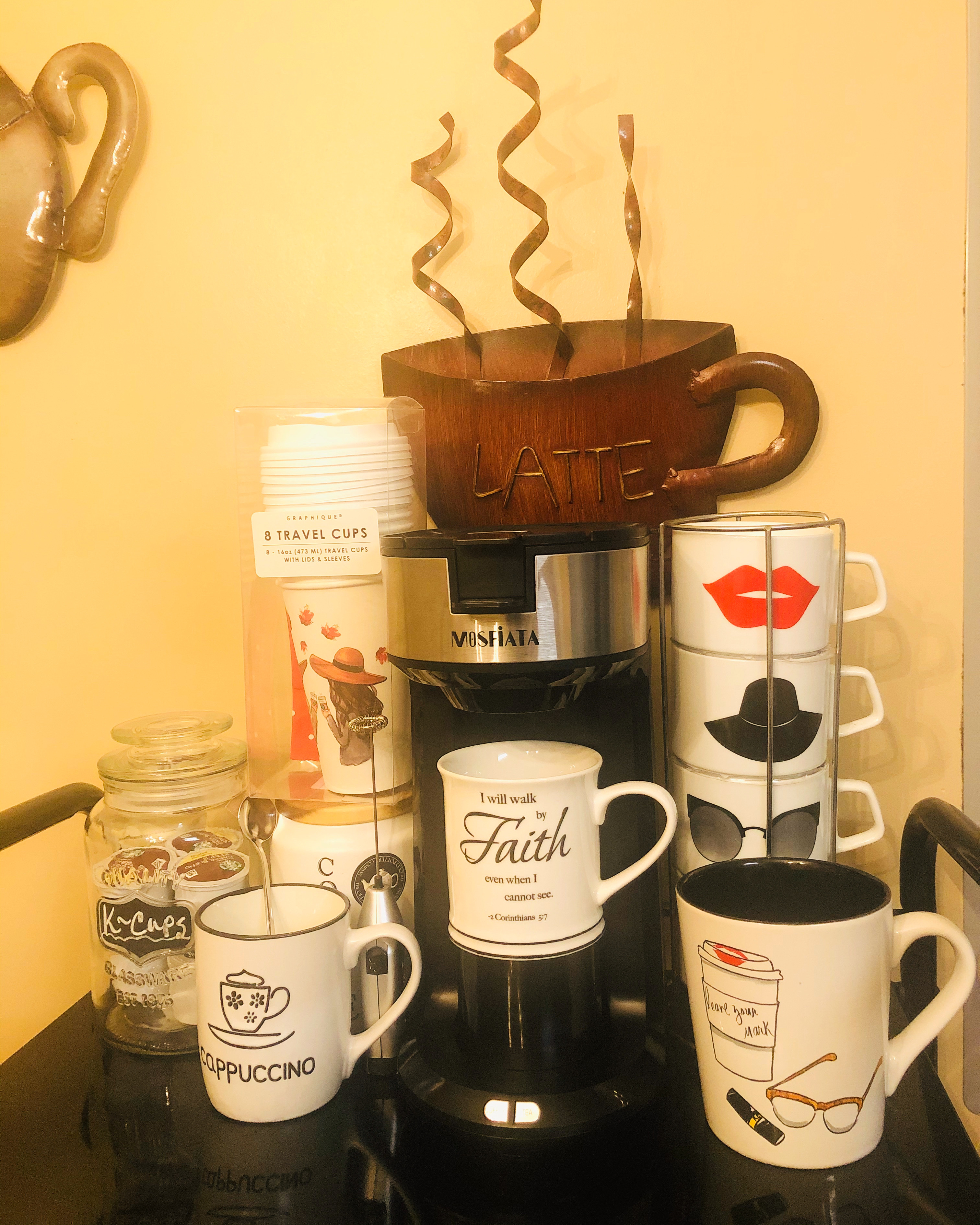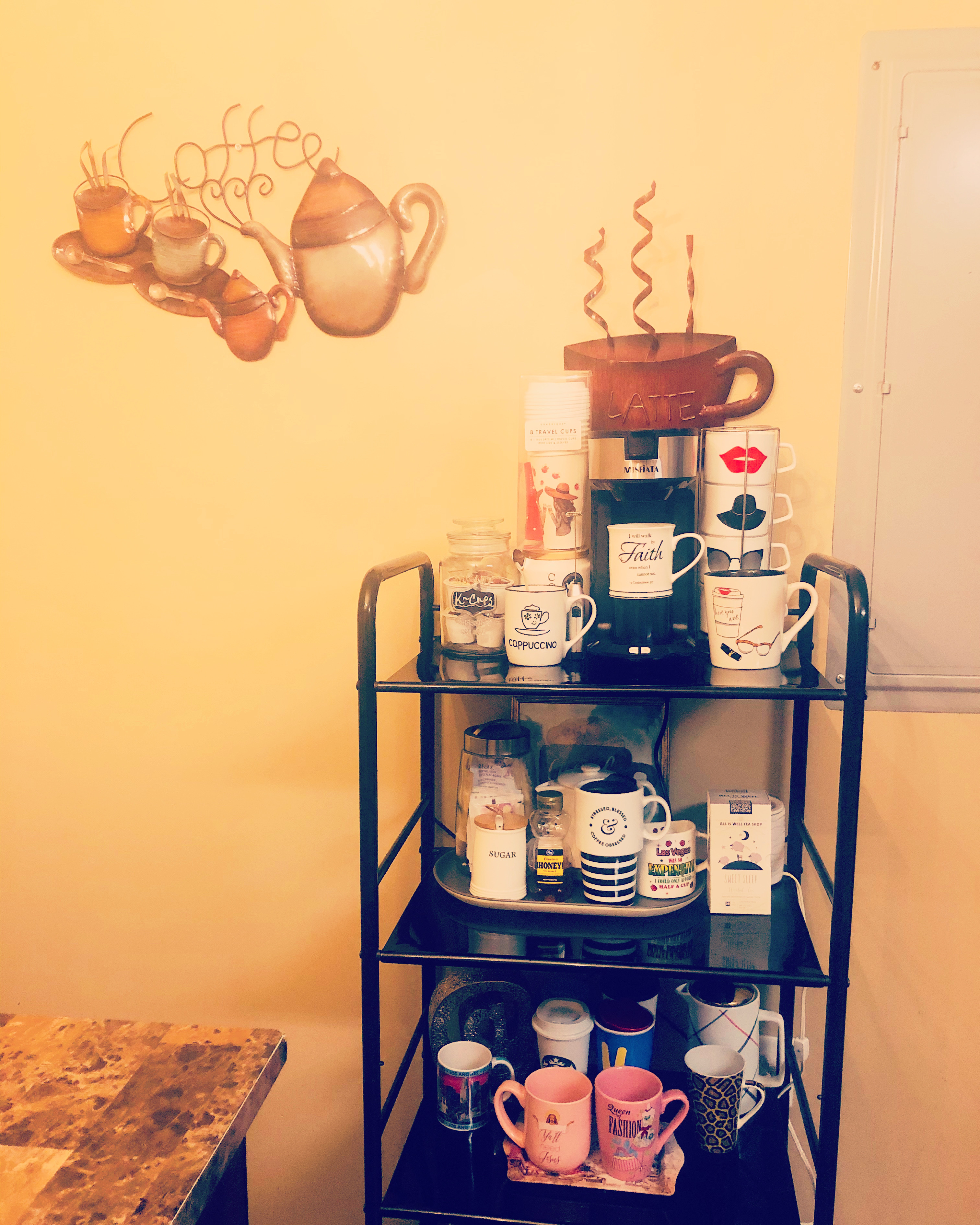 Hello guys! I’m sharing my bar cart that I put together… It’s finally “Fall Ya’ll!” I normally drink coffee when it’s cooler and I drink tea as well… I purchased my coffee maker from Amazon and I love it! I can make coffee or tea in it.. It uses k-cups, ground coffee, or loose tea… It’s perfect and it brews coffee in one minute or less… Clean~up is easy as well! I was looking for an affordable coffee maker and I ran across this one, it’s so convenient. I paid $40 and it was so worth it…” Most people use the keurig and I did a little research and read some reviews, and I decided not to purchase one… I’m so happy I went with this one! I have so many different mugs and I also purchased some cups for on the go! Check out my post below! Enjoy! Xoxo!